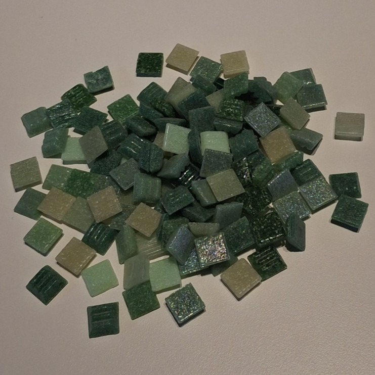 Glasmozaïek 1 x 1 cm steentjes de luxe, ze zijn 4mm dik
