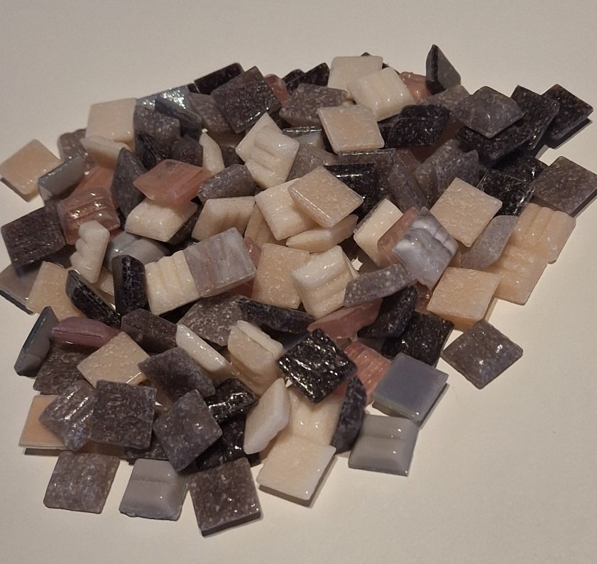 Glasmozaïek 1 x 1 cm steentjes de luxe, ze zijn 4mm dik, ze zijn in combi met de 2c2cm goed te gebuiken