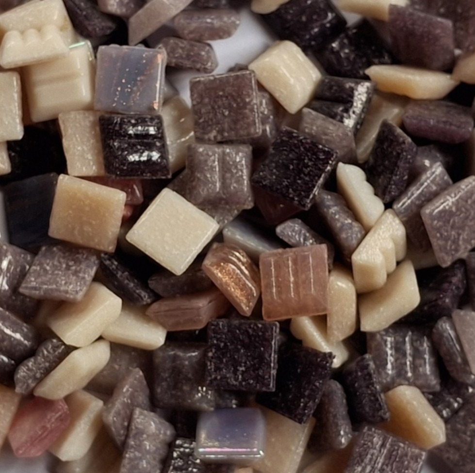 Glasmozaïek 1 x 1 cm steentjes de luxe, ze zijn 4mm dik, ze zijn in combi met de 2c2cm goed te gebuiken
