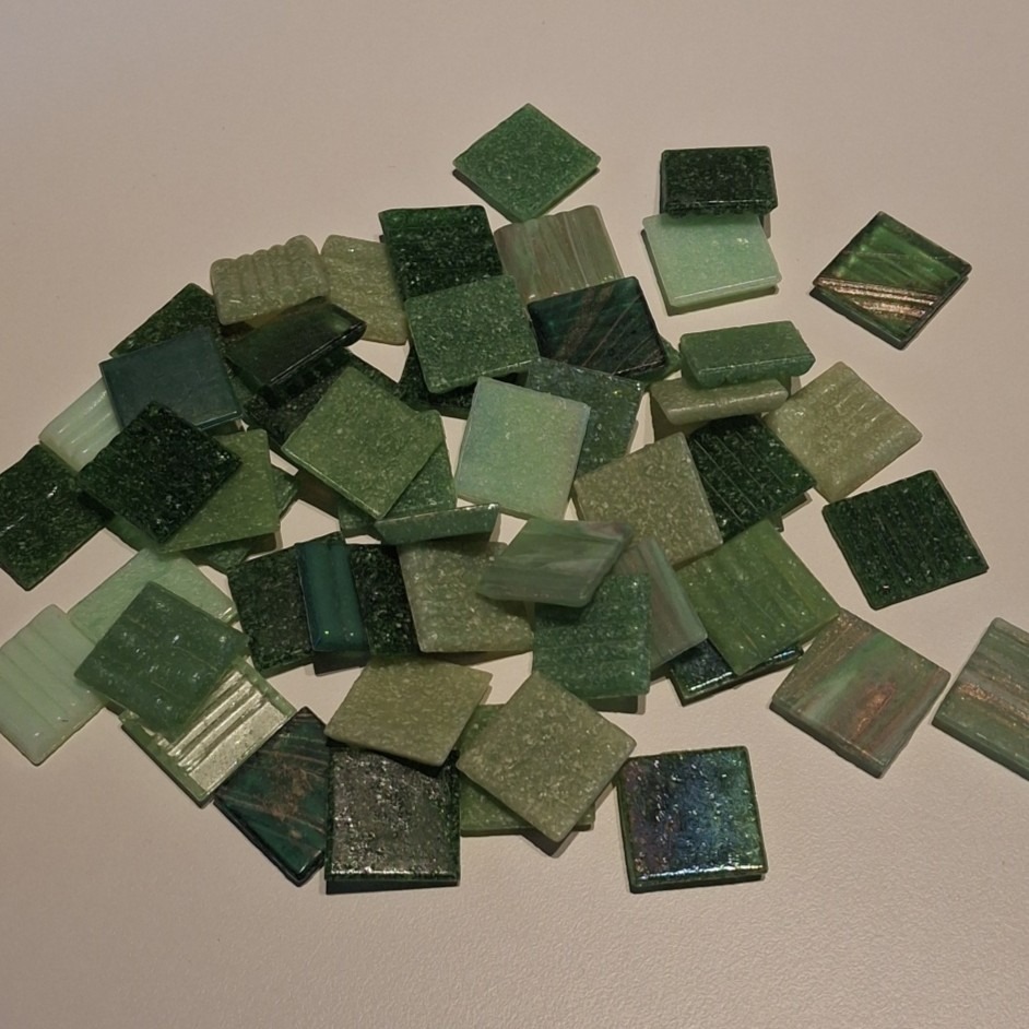 Glasmozaïek 2 x 2 cm steentjes. Zakje 250 gram, Vierkantjes van door- en door gekleurd glas, 20×20 mm, 4 mm dik.