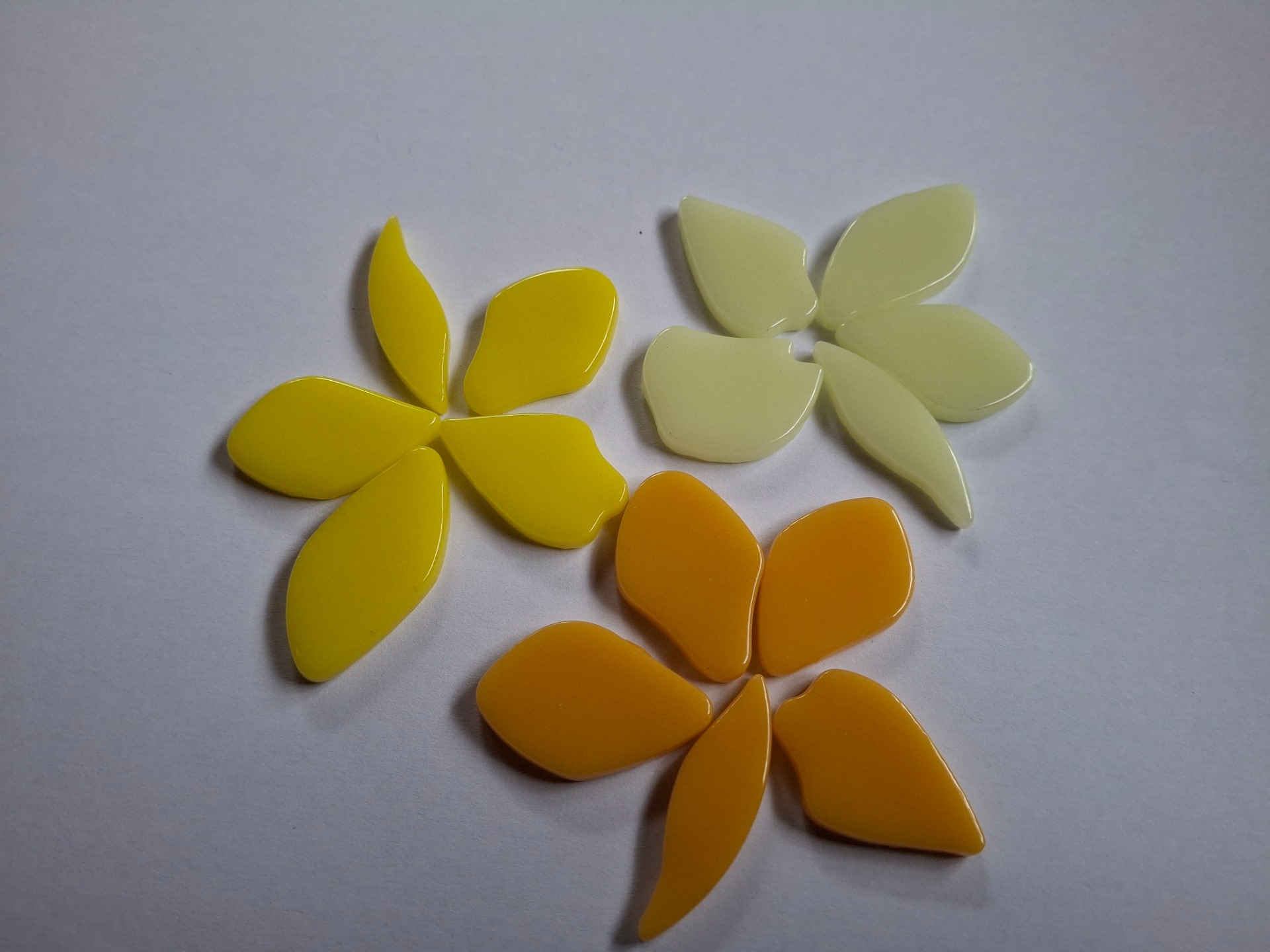 Glas bloemblaadjes in 7 verschillende vormen die gecombineerd kunnen worden om een hele reeks bloemen te maken.