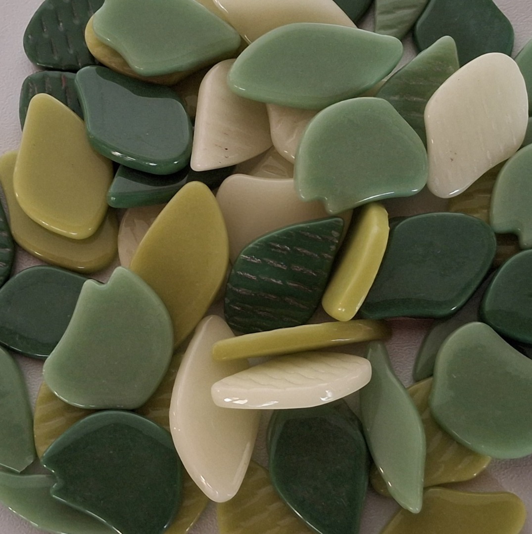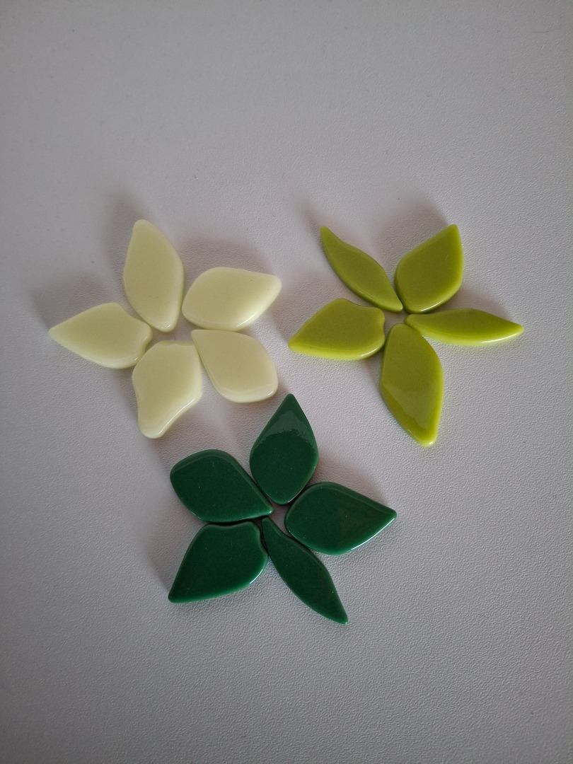 Glas bloemblaadjes in 7 verschillende vormen die gecombineerd kunnen worden om een hele reeks bloemen te maken.