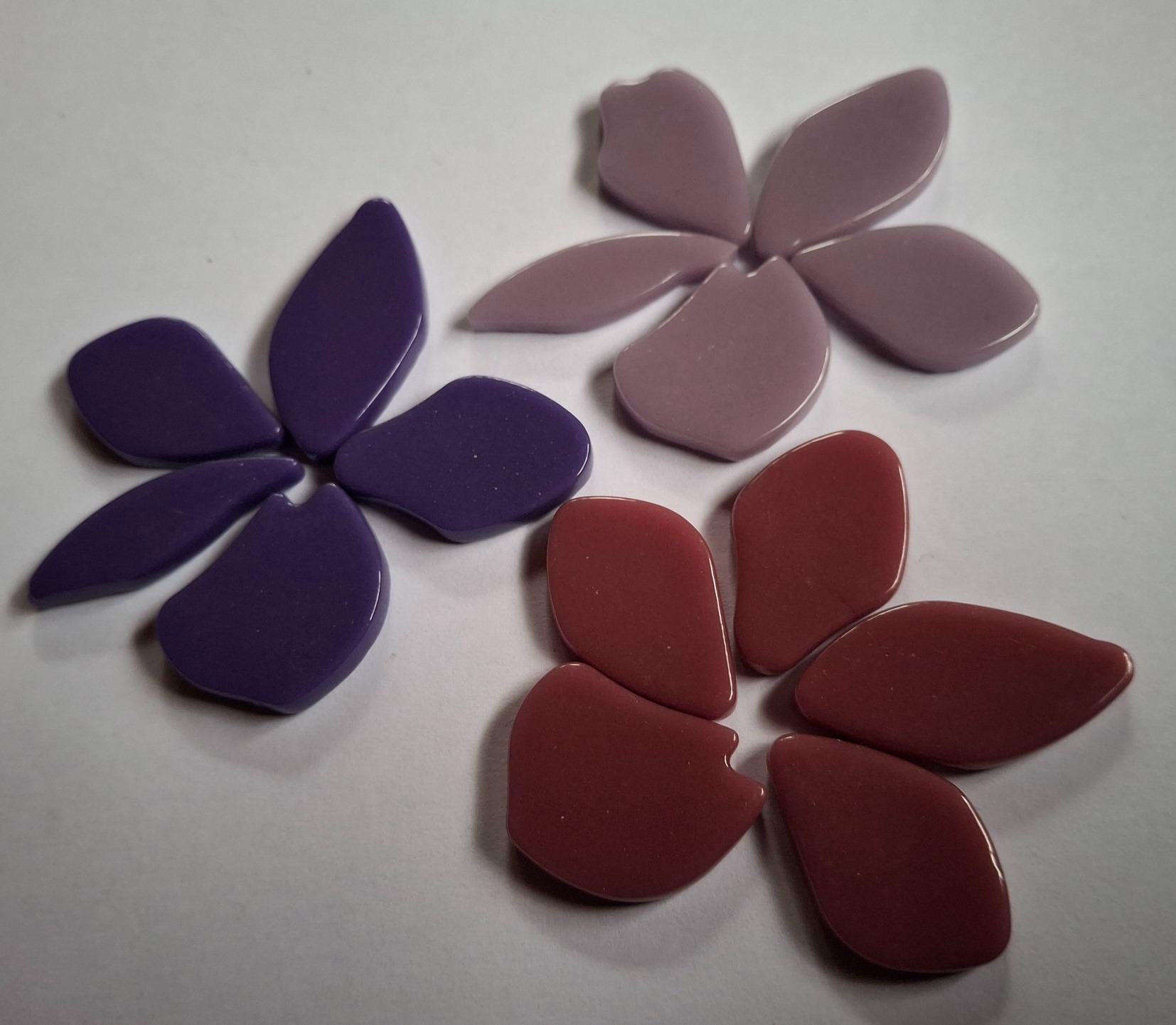 Glas bloemblaadjes in 7 verschillende vormen die gecombineerd kunnen worden om een hele reeks bloemen te maken.