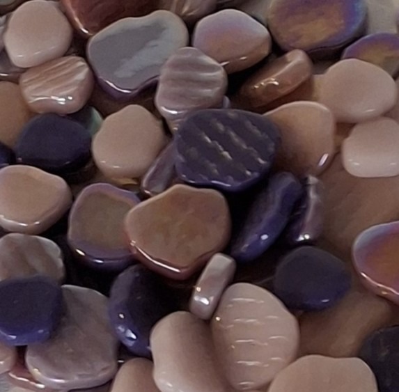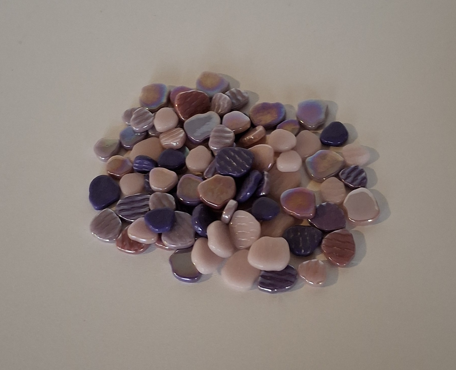 Steentjes zijn ongeveer 4 mm dik In 250 gram zitten ongeveer 175 stukjes.