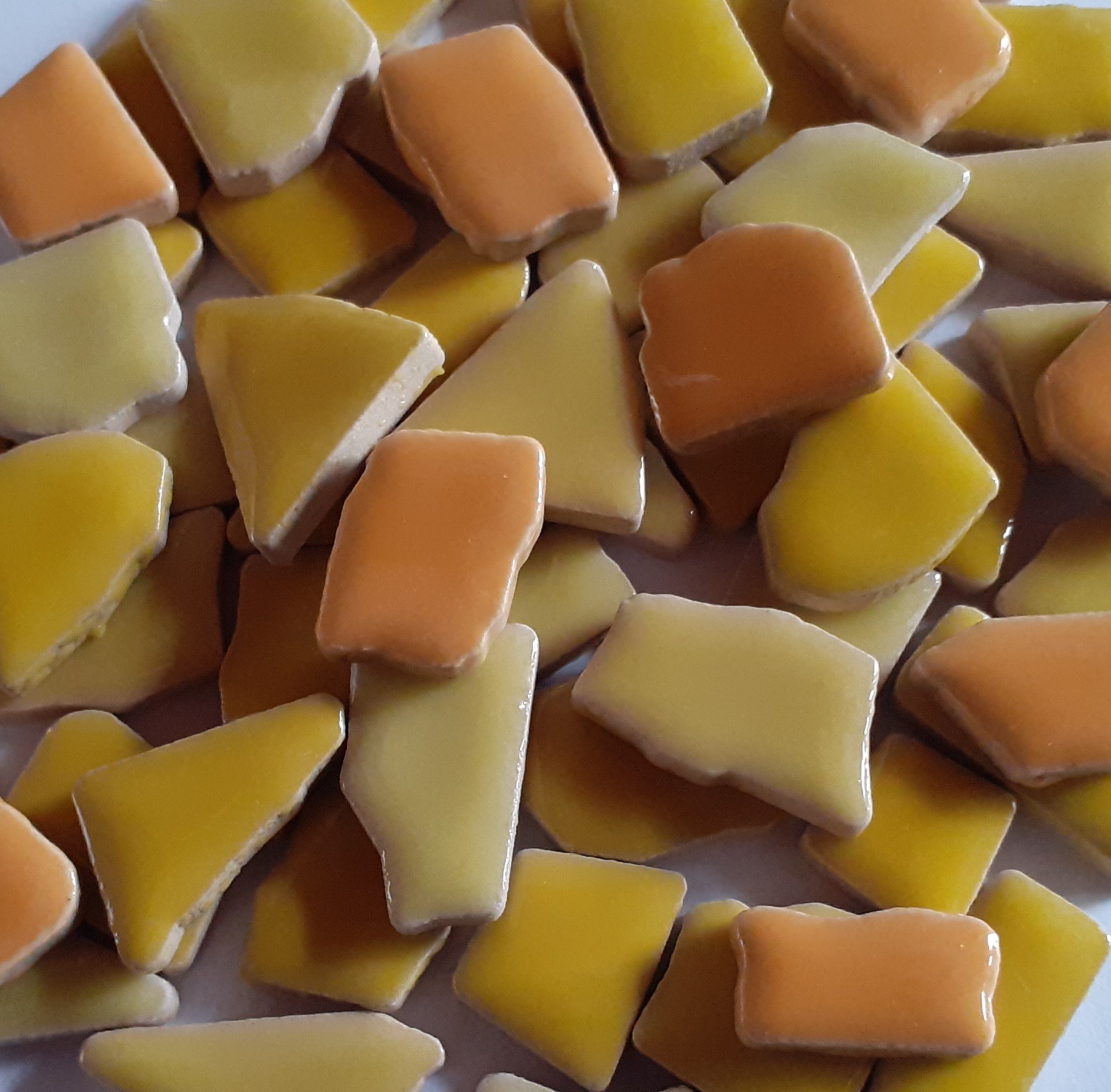 Keramische steentjes, Dubbelgebakken puzzelstukjes van eerste klas klei met vorst- en krasbestendige glazuur, waardoor ze optimaal zijn voor gebruik binnen en buiten in alle seizoenen. Bij extreme vorst wel binnen.