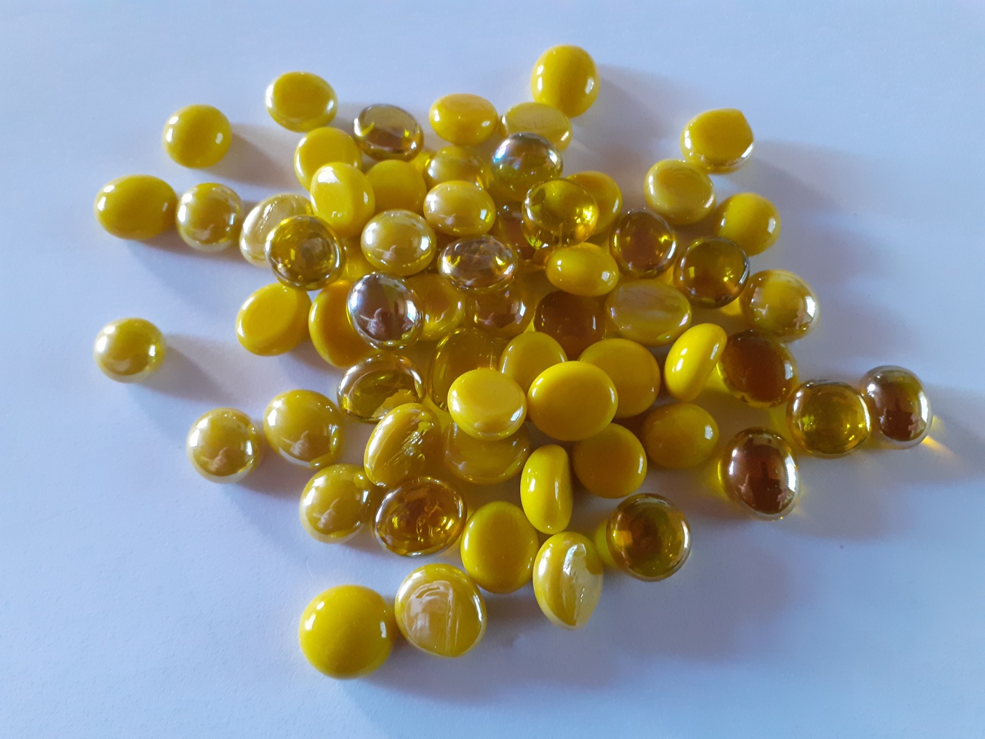 verschillend zijn in het zakje. Een mooie gekleurde mix van mini glasnuggets inverschillende maten en kleuren.