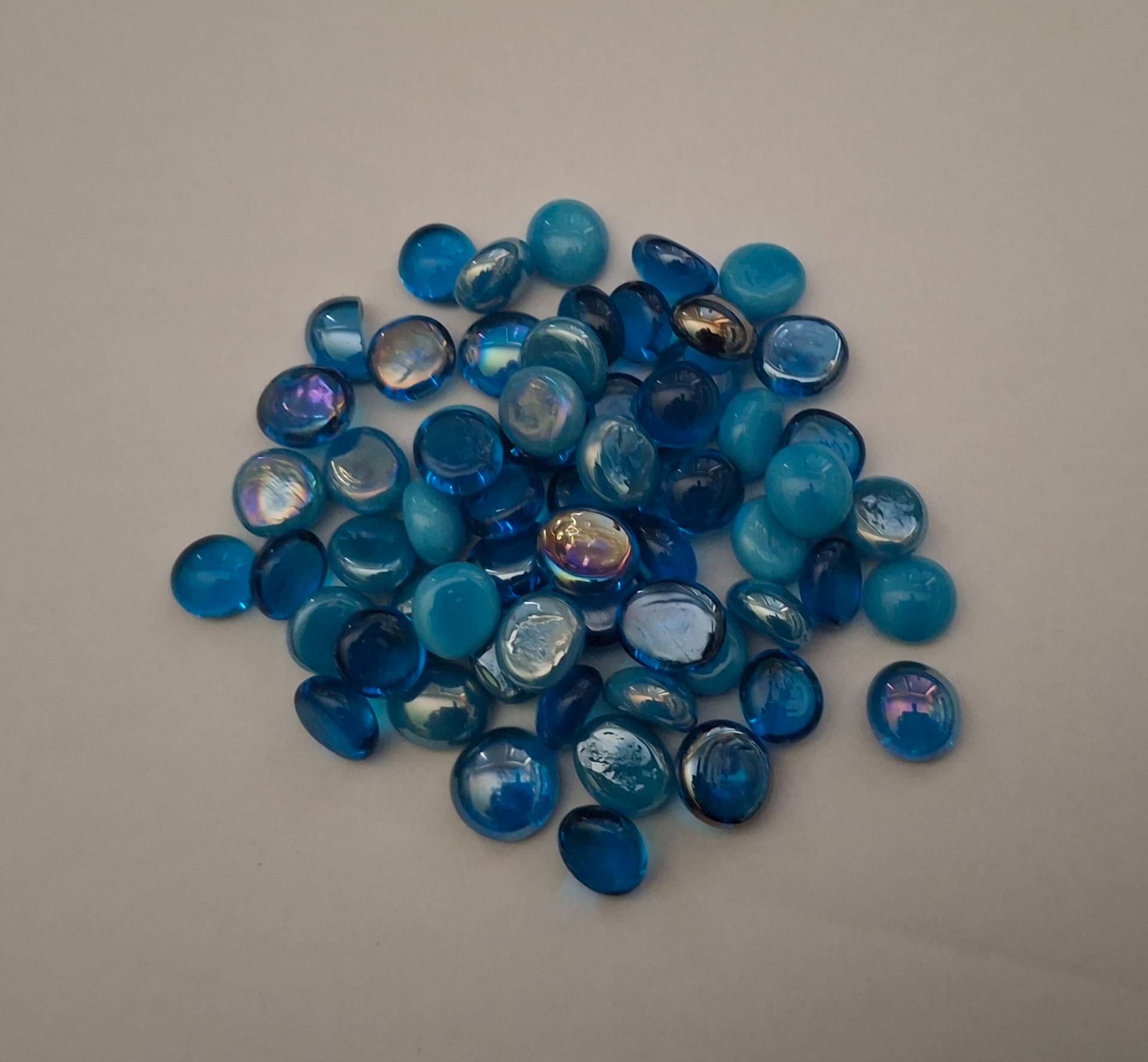 verschillend zijn in het zakje. Een mooie gekleurde mix van mini glasnuggets inverschillende maten en kleuren.