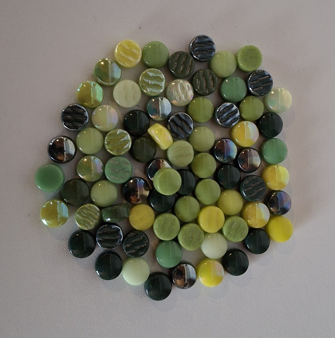 In 250 gram zitten ongeveer 165 steentjes. De optic drops zijn ongeveer 6 mm dik. Hebben een doorsnee van 12 mm.